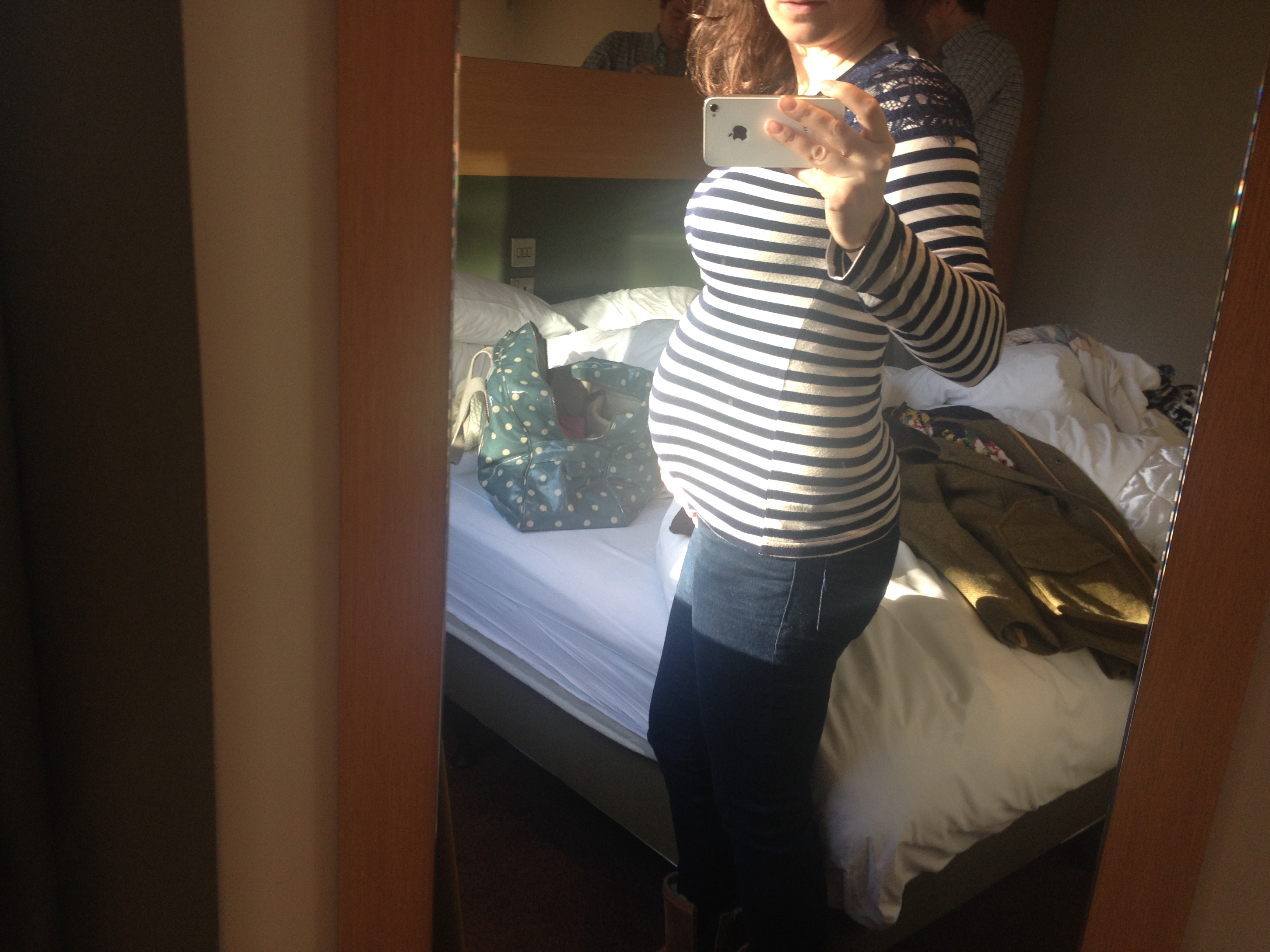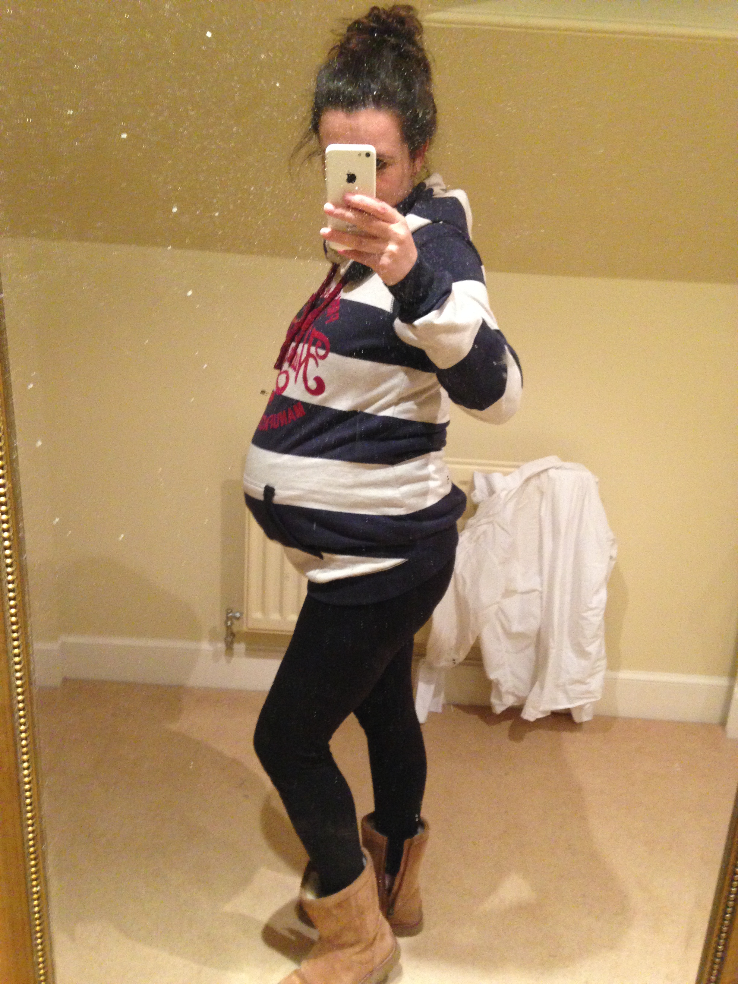 I was definitely in denial at his point, squeezing into clothes that didn’t really fit anymore and certainly, in my opinion, didn’t fit my new shape! Β Note to self..embrace pregnancy and bump!