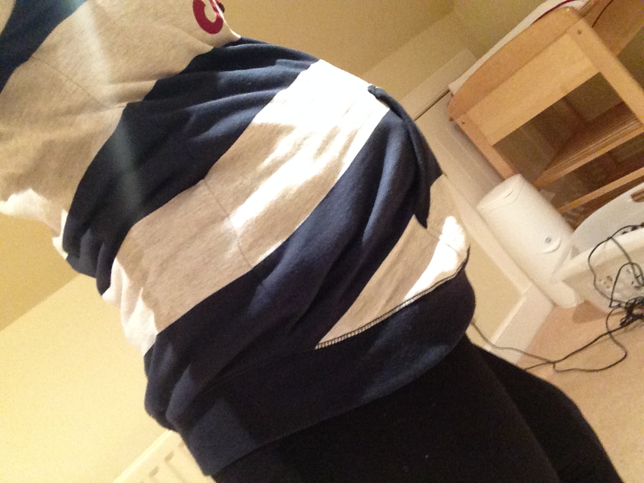 STRIPES. Β For some reason (although I’m sure other fashion gurus would advice against this) horizontal stripes seemed to work for me…and also Katie Piper who was snapped wearing the same dress! Β Yes, I was delighted. Β Striped top from Warehouse (non-maternity but stretchy!), Stripy dress as seen on me (and Katie Piper) from New Look and stripy boob-tube (under pink cardigan) and stripy hoodie also from New Look – they are clearly also into horizontal stripes!