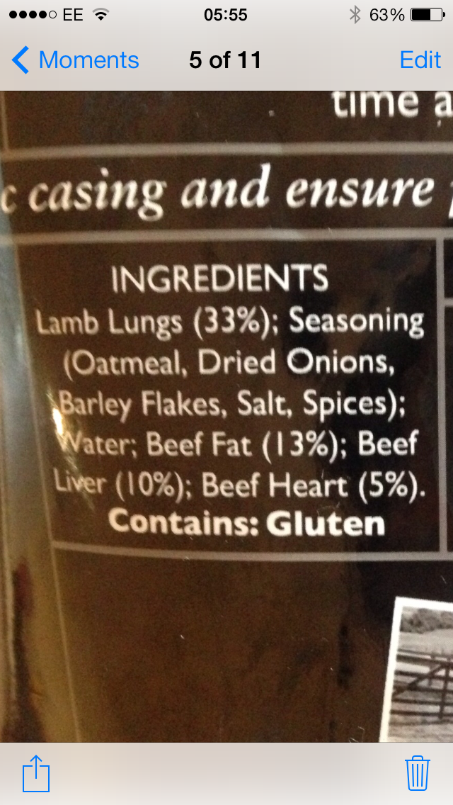 So, what’s in a haggis? I decided to check out a Simon Howie Haggis, available in most supermarkets and made by a local Perthshire butcher.