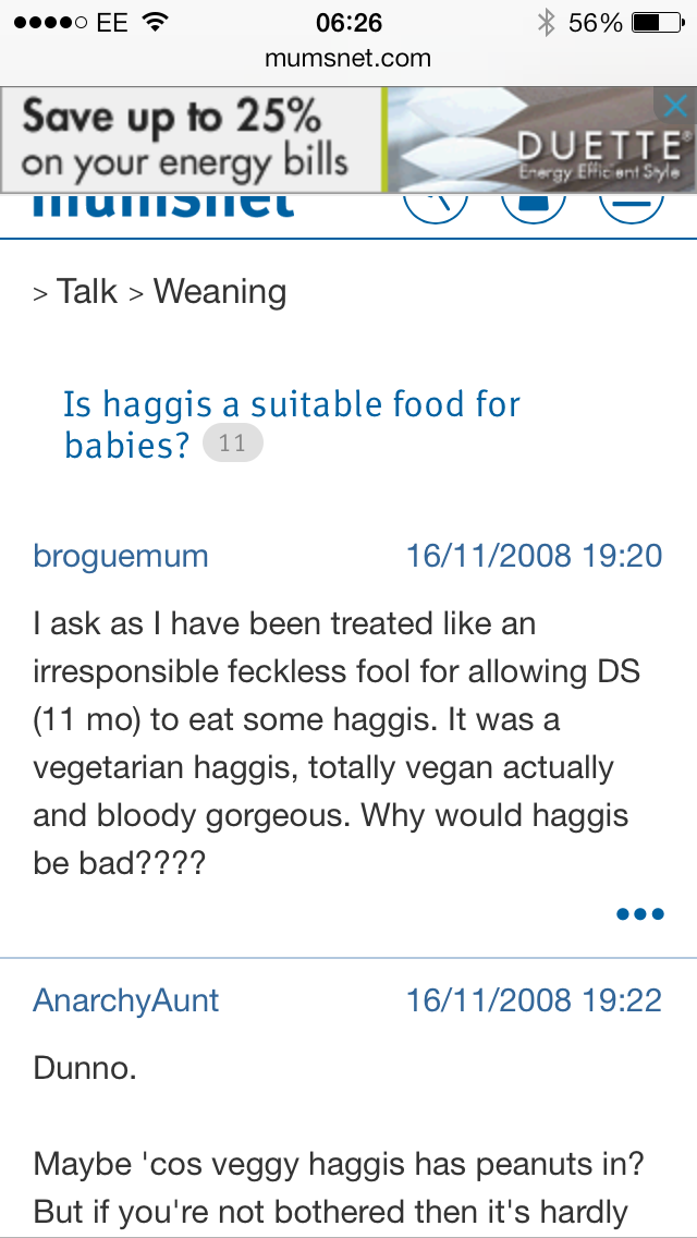 I always find an array of opinions with Mumsnet but this means nothing to be. I know plenty of people will have/haven’t given their baby haggis, what I want is expert opinion (this statement is by no means meant to offend any Mumsnet Mummies..you are all experts, just not the kind I am looking for!)